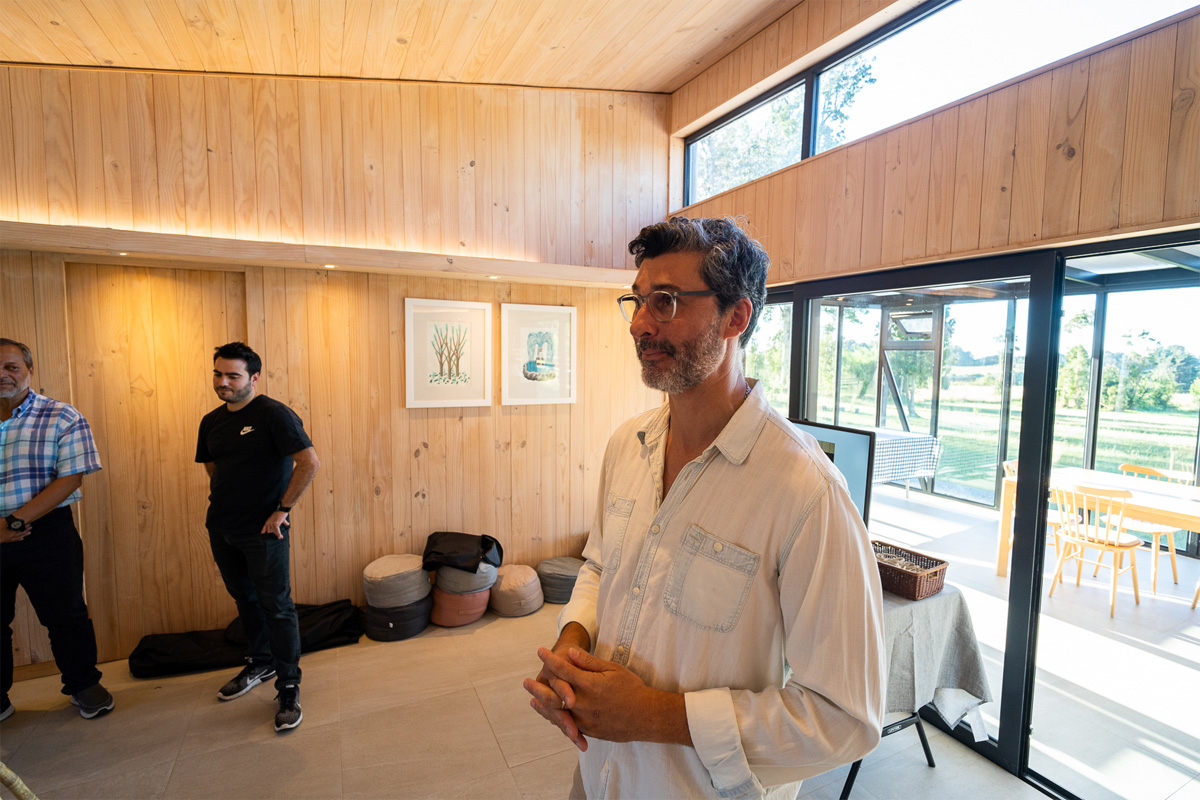 El Centro de Inmersión combina espacios cálidos y funcionales para el trabajo, junto a rincones naturales pensados para respirar, conversar y compartir.